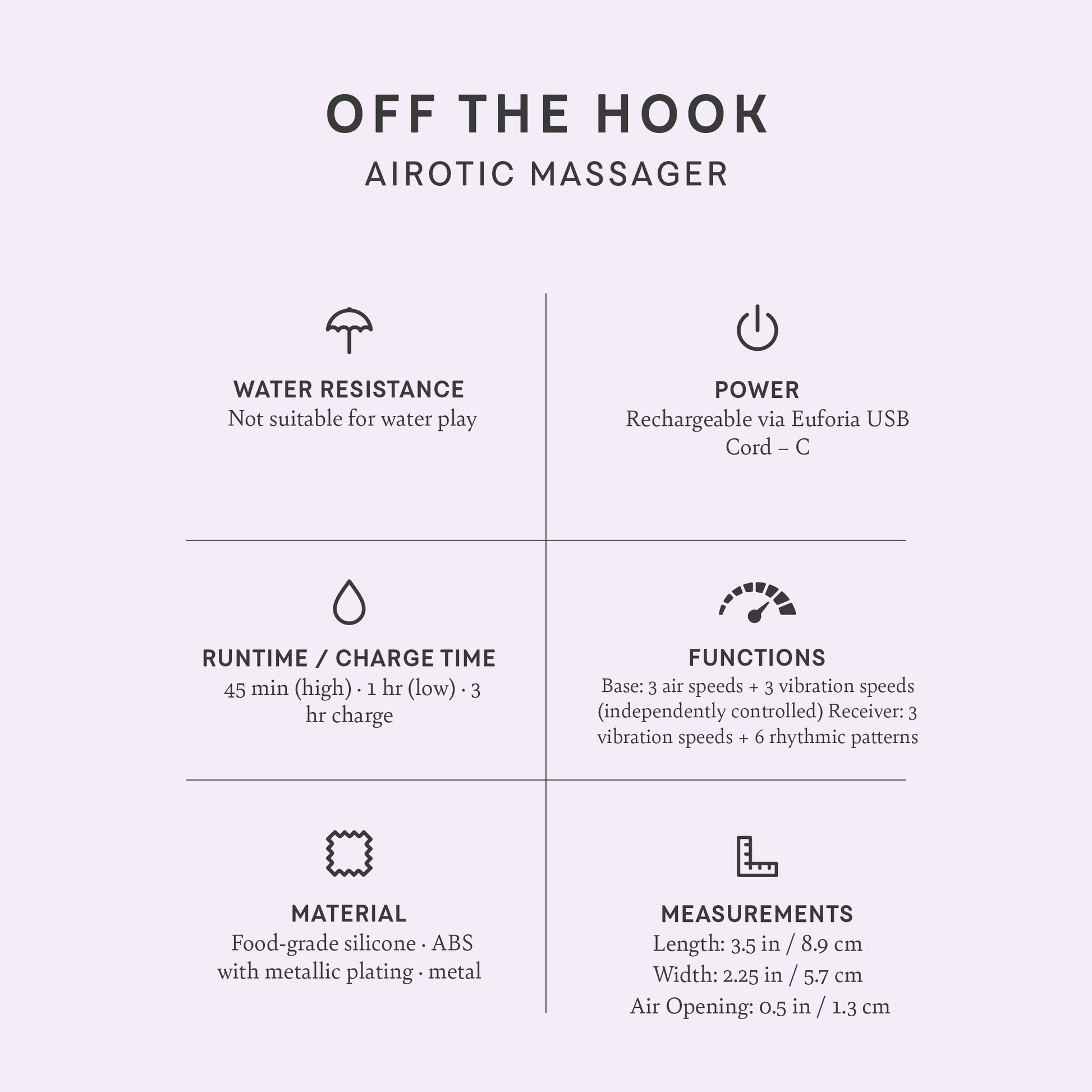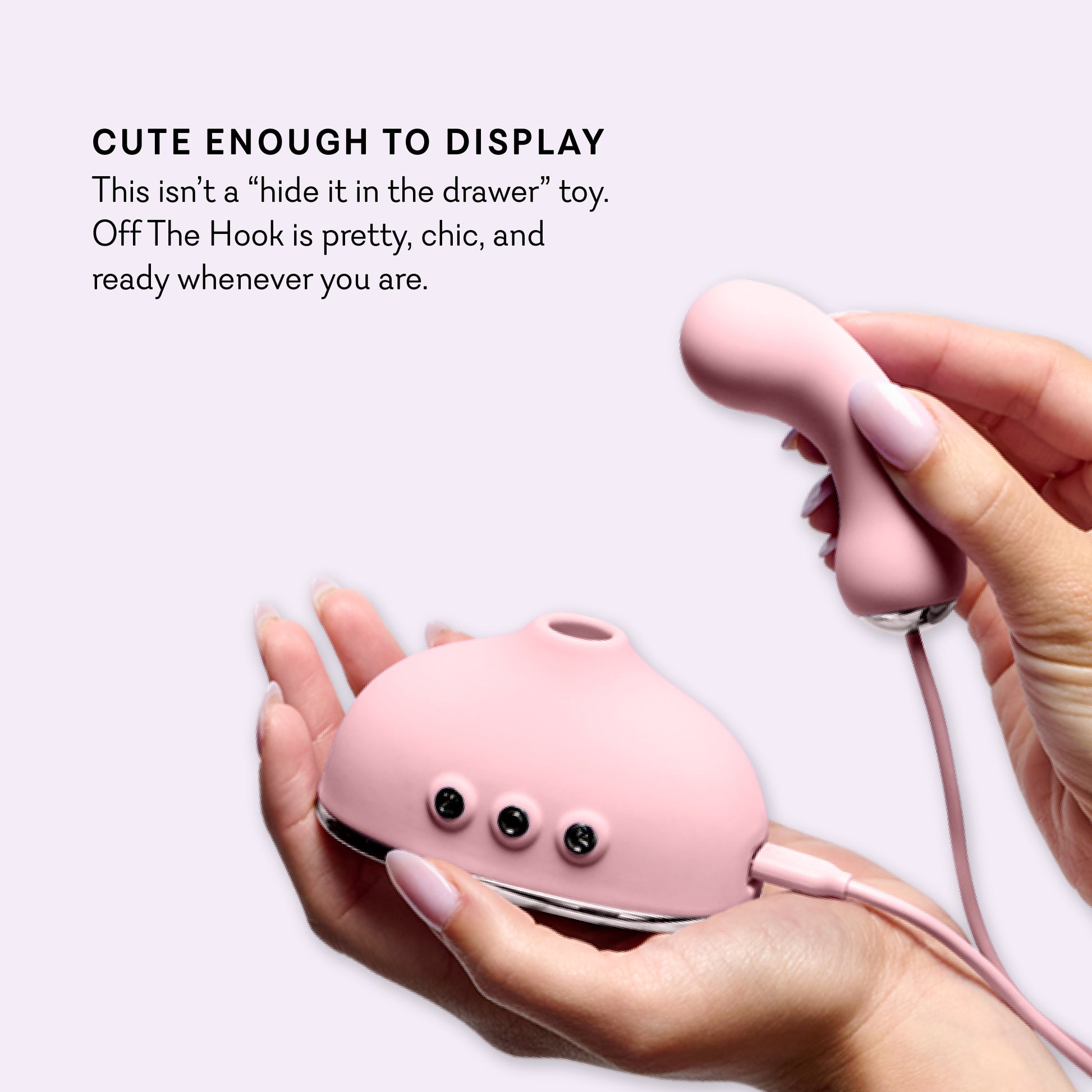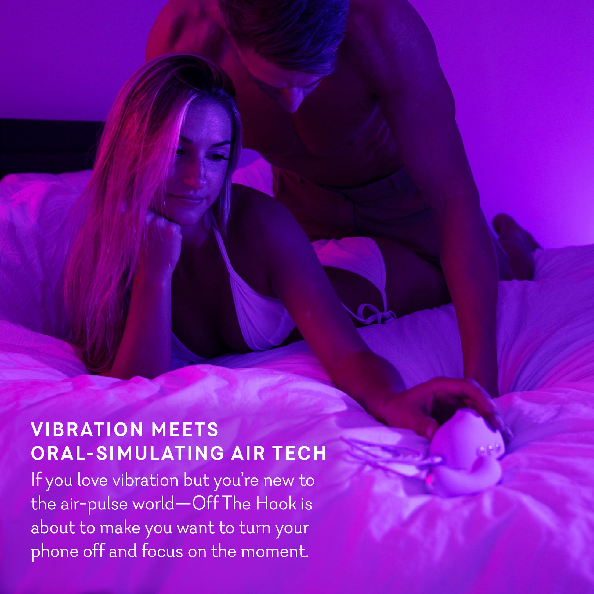 Combinando tecnología innovadora de presión de aire con vibración tradicional, Off The Hook es una forma divertida y versátil de explorar qué tipo de estimulación es adecuada para usted.