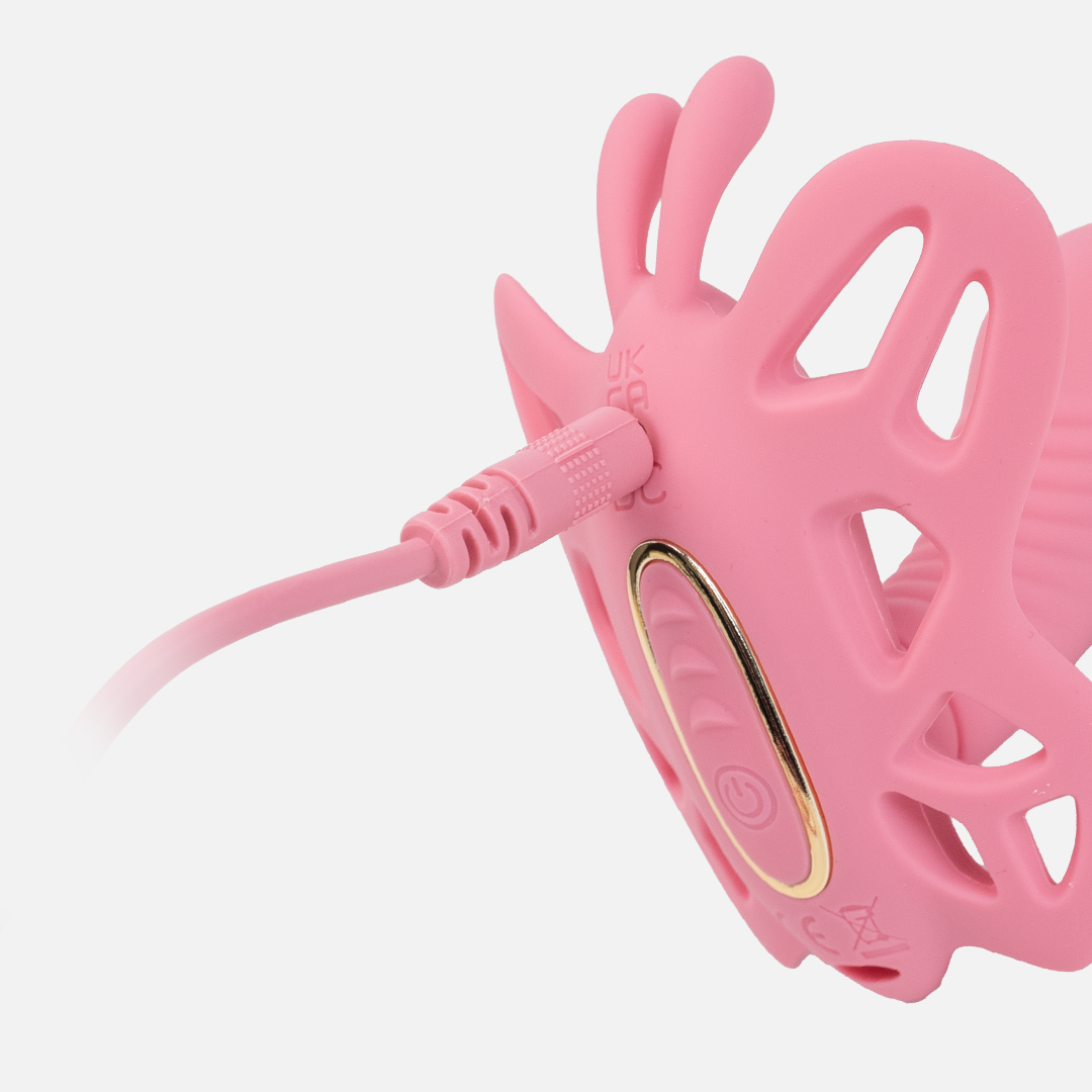 This toy features a waterproof design and is USB rechargeable.
