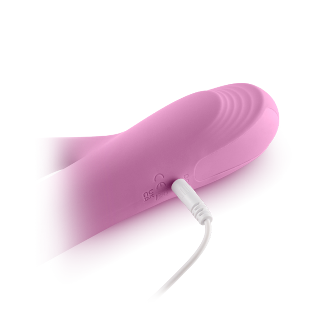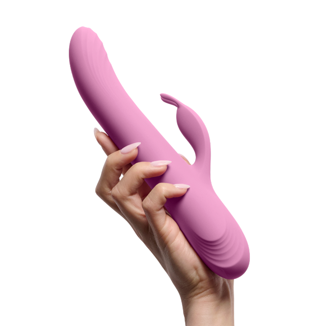 Este masajeador premium de doble acción cuenta con un estilo único de movimiento pulsador y un estimulador vibratorio tipo conejo para una experiencia que tienes que sentir para creer.