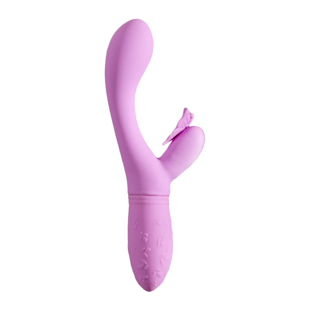 Introducing Fluttervibe, the silicone dual-action vibrator that'll make your fantasies take flight! The curvy shaft and butterfly-shaped teaser vibrate together with your choice of 10 thrilling functions. Add a little G-spot stimulation to your flight of fancy by angling the textured tip against your pleasure point. Or use it to tease deeper hotspots while the butterfly wings flutter against your clitoris! However you decide to explore your own secret garden, you’re sure to reach new heights of pleasure.