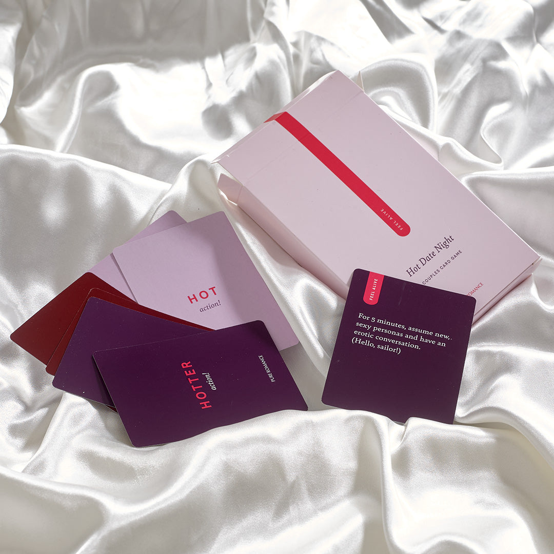 Let the games begin with the Hot Date Night Card Game. You’ll never know what’s next when you draw a card from one of the four sizzling decks. Each card has a sexy action, question, or suggestion to turn up the heat on your night. Play with one deck or mix all four together for an added element of surprise. Any way you play, everyone wins with Hot Date Night.
