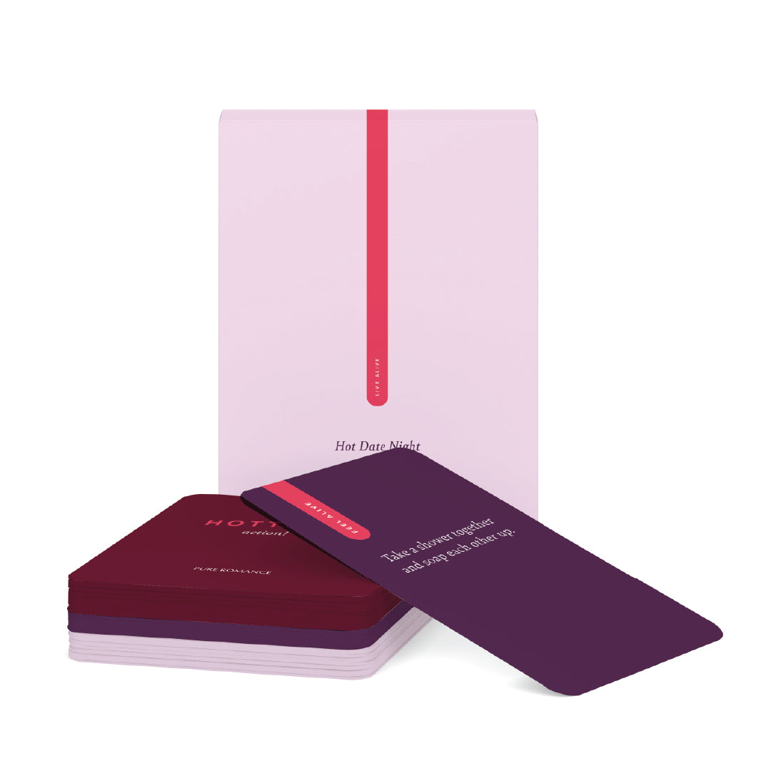 Let the games begin with the Hot Date Night Card Game. You’ll never know what’s next when you draw a card from one of the four sizzling decks. Each card has a sexy action, question, or suggestion to turn up the heat on your night. Play with one deck or mix all four together for an added element of surprise. Any way you play, everyone wins with Hot Date Night.