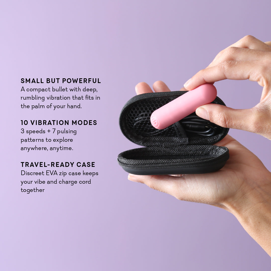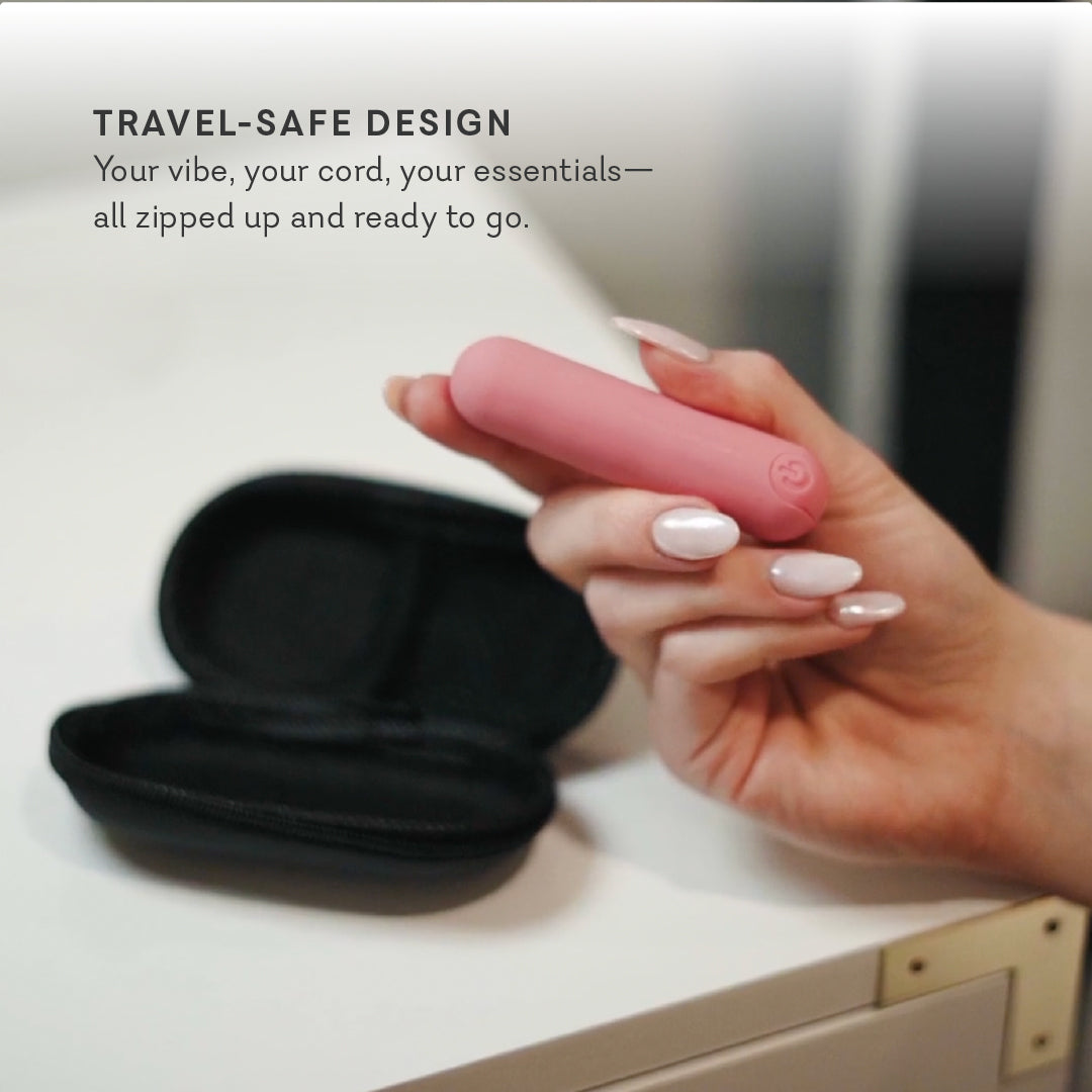 • Travel-friendly! Small but powerful bullet vibrator with zip-up EVA case.
