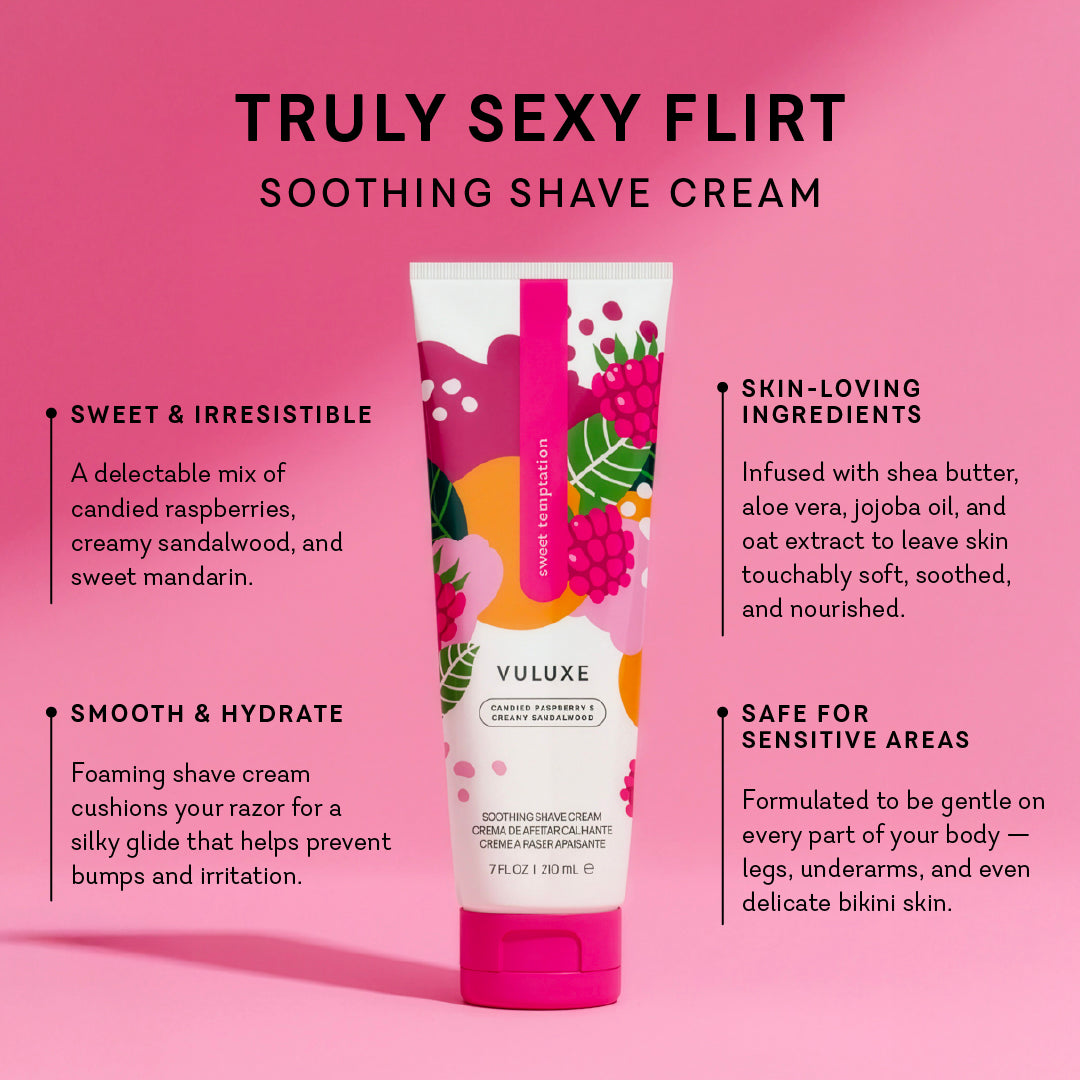 Ready for the best shave ever? Vuluxe Soothing Shave Cream is the shower essential you didn’t know you needed. This foaming formula helps prevent razor bumps and irritation with a powerful combination of ultra-hydrating and anti-inflammatory ingredients like shea butter, jojoba oil, aloe vera, and oat extract.